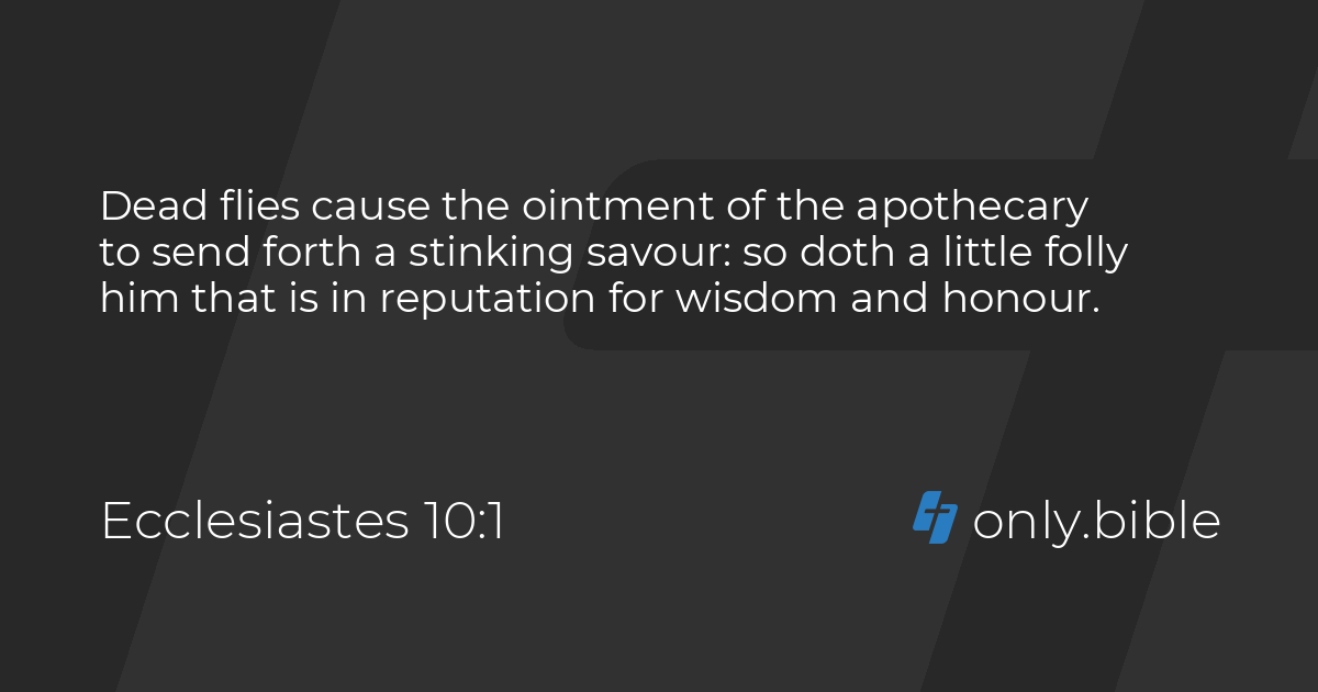 Ecclesiastes 10 King James Version KJV 10 Dead flies cause the ointment of the apothecary to send forth a stinking savour. 1 dead flies cause the ointment of the apothecary to send forth a stinking savour. 1 dead flies cause the ointment of the apothecary to send forth a stinking savour.